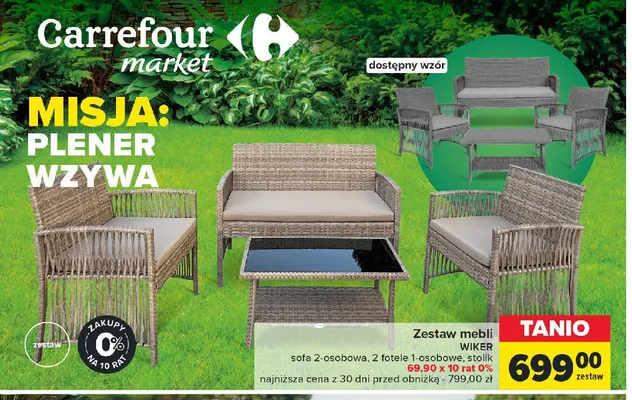 Nie wiesz gdzie kupi膰 produkt Zestaw mebli ogrodowych wiker: stolik + sofa + 2 fotele w promocji? Aktualnie produkt Zestaw mebli ogrodowych wiker: stolik + sofa + 2 fotele znajduje si臋 w atrakcyjnej cenie w sklepach Carrefour. Opr贸cz tego produkt mo偶na kupi膰 w innych sklepach, jednak aktulanie nie posiadamy informacji o promocjach w nich.