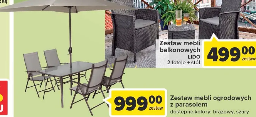 Przegl膮daj podobne oferty promocyjne do Zestaw mebli ogrodowych z parasolem szary!