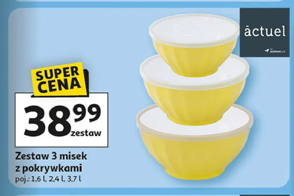 Zastanawiasz si臋, gdzie kupi膰 i ile kosztuje produkt Zestaw misek Actuel? Regularnie sprawdzamy, czy jest promocja na ten produkt w Biedronka, Lidl, Kaufland, Auchan, Netto, Makro i innych sklepach. Aktualnie nie posiadamy ofert promocyjnych na ten produkt.