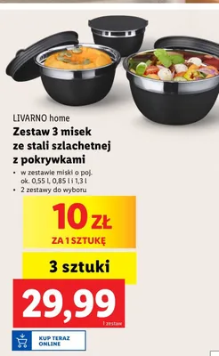 Gdzie mo偶na tanio kupi膰 produkt Zestaw misek ze stali szlachetnej 550 ml + 850 ml + 1.3 l Livarno?
