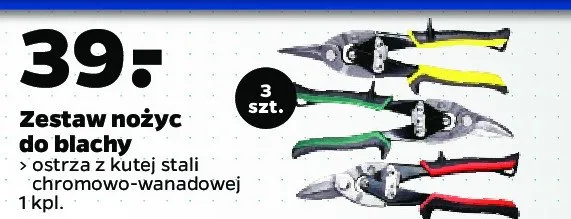Zastanawiasz si臋, gdzie kupi膰 i ile kosztuje produkt Zestaw no偶yc do blachy? Regularnie sprawdzamy, czy jest promocja na ten produkt w Biedronka, Lidl, Kaufland, Auchan, Netto, Makro i innych sklepach. Aktualnie nie posiadamy ofert promocyjnych na ten produkt.