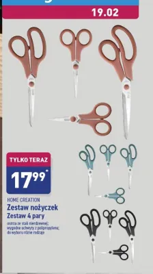 Cena produktu różni się w zależności od wybranego sklepu. Niestety nie posiadamy danych o aktualnych promocjach, jednak wśród archiwalnych ofert Zestaw nożyczek: nożyczki krawieckie 24.5 cm + nożyczki domowe 21.5 cm + nożyczki do precyzyjnego cięcia 13.5 cm + nożyczki do szycia 12 cm Home creation kosztuje od 17,99 zł.