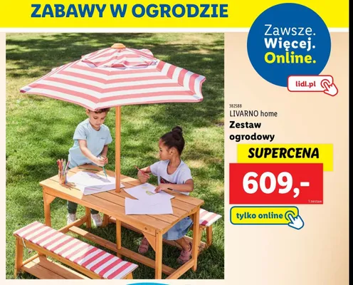 Cena produktu r贸偶ni si臋 w zale偶no艣ci od wybranego sklepu. Niestety nie posiadamy danych o aktualnych promocjach, jednak w艣r贸d archiwalnych ofert Zestaw ogrodowy dla dzieci LIVARNO HOME kosztuje od 609 z艂.