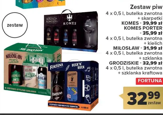 Ile kosztuje Zestaw piw + szklanka Fortuna czarne + komes porter bałtycki + miłosław warzy śmiało?