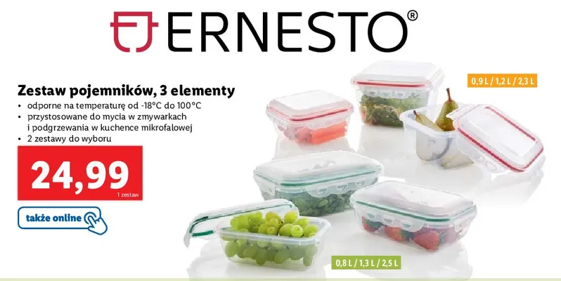 Ile kosztuje Zestaw pojemnik贸w do przechowywania 偶ywno艣ci 0.8 l + 1.3 l + 2.5 l Ernesto?