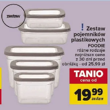 Cena produktu r贸偶ni si臋 w zale偶no艣ci od wybranego sklepu. Niestety nie posiadamy danych o aktualnych promocjach, jednak w艣r贸d archiwalnych ofert Zestaw pojemnik贸w foodie kosztuje od 19,99 z艂.