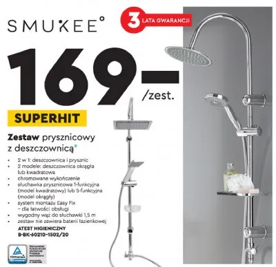 Gdzie mo偶na tanio kupi膰 produkt Zestaw prysznicowy z deszczownic膮 Smukee?