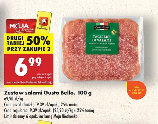 Zastanawiasz si臋, gdzie kupi膰 i ile kosztuje produkt Zestaw salami Gustobello? Regularnie sprawdzamy, czy jest promocja na ten produkt w Biedronka, Lidl, Kaufland, Auchan, Netto, Makro i innych sklepach. Aktualnie nie posiadamy ofert promocyjnych na ten produkt.