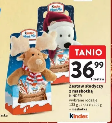 Przegl膮daj podobne oferty promocyjne do Zestaw 艣wi膮teczny + maskotka renifer Kinder maxi mix!
