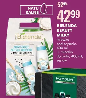 Gdzie można tanio kupić produkt Zestaw w pudełku beauty milky: kremowe mleczko kokosowe z prebiotykiem do kąpieli i pod prysznic 400 ml + mleczko kokosowe z prebiotykiem do pielęgnacji ciała 400 ml Bielenda zestaw?