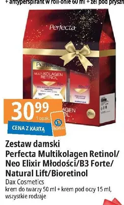 Cena produktu różni się w zależności od wybranego sklepu. Niestety nie posiadamy danych o aktualnych promocjach, jednak wśród archiwalnych ofert Zestaw w pudełku: krem przeciwzmarszczkowy na dzień i na noc 50+ 50ml + krem rozświetlający pod oczy 15ml kosztuje od 32,99 zł do 39,99 zł.
