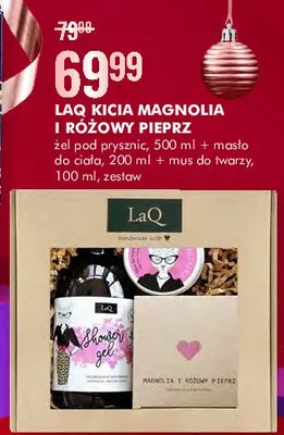 Gdzie można tanio kupić produkt Zestaw w pudełku magnolia i różowy pieprz: żel pod prysznic 500 ml + masło do ciała 200 ml + mus do twarzy 100 ml LAQ ZESTAW?