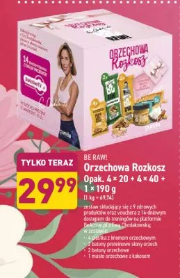 Zestaw w pude艂ku mas艂o orzechowe z kokosem 190 g + 4x ciastka z kremem orzechowym 40 g + 2x baton proteinowy s艂ony orzech 20 g + 2x baton orzechowy 20 g Be raw! promocje w sklepach - znajd藕 ofert臋 dla siebie!