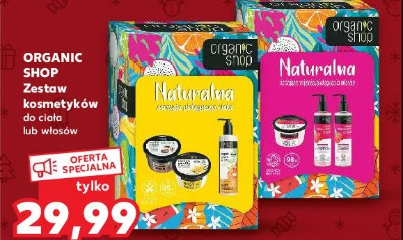 Cena produktu różni się w zależności od wybranego sklepu. Niestety nie posiadamy danych o aktualnych promocjach, jednak wśród archiwalnych ofert Zestaw w pudełku natural & juicy body care: żel pod prysznic grapefruit & lime 280 ml + mus do ciała vanilla & orchid 250 ml + peeling do ciała coffee & sugar 250 ml Organic shop zestaw kosztuje od 29,99 zł do 34,99 zł.