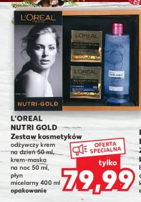 Gdzie można tanio kupić produkt Zestaw w pudełku nutri-gold płyn micelarny do skóry suchej i wrażliwej 400 ml + odżywczy krem-olejek do twarzy 50 ml + krem-maska do twarzy na noc 50 ml L'oreal zestawy?