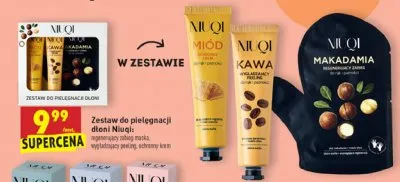 Ile kosztuje Zestaw w pudełku: peeling wygładzający kawa + krem ochronny miód + regenerujący zabieg do rąk i paznokci makadamia Niuqi #bodyfood?