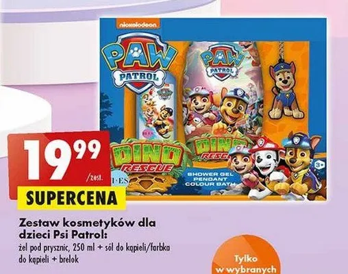 Cena produktu różni się w zależności od wybranego sklepu. Niestety nie posiadamy danych o aktualnych promocjach, jednak wśród archiwalnych ofert Zestaw w pudełku psi patrol: żel pod prysznic i szampon 2w1 250 ml + farbka do kąpieli + brelok kosztuje od 19,99 zł.