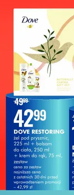 Ile kosztuje Zestaw w pudełku restoring: balsam do ciała 250 ml + żel pod prysznic 225 ml + krem do rąk 75 ml Dove zestaw?