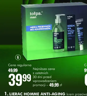 Cena produktu różni się w zależności od wybranego sklepu. Niestety nie posiadamy danych o aktualnych promocjach, jednak wśród archiwalnych ofert Zestaw w pudełku: żel do mycia twarzy 195 ml + krem do twarzy nawilżający 40 ml Tołpa men zestaw kosztuje od 39,99 zł do 44,99 zł.