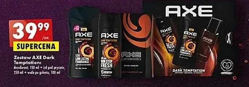 Gdzie można tanio kupić produkt Zestaw w pudełku żel pod prysznic 250 ml + dezodorant 150 ml + woda po goleniu 100 ml Axe dark temptation?