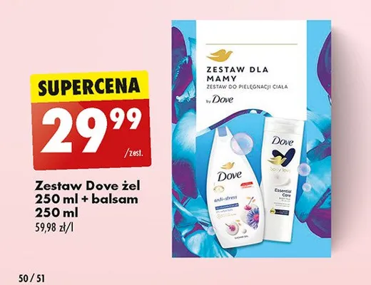 Ile kosztuje Zestaw w pudełku: żel pod prysznic anti stress 250 ml + balsam do ciała essential care 250 ml Dove zestaw?