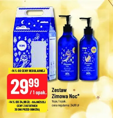 Ile kosztuje Zestaw w pudełku zimowa noc: mydło do rąk 500 ml + żel pod prysznic 400 ml Yope zestaw?