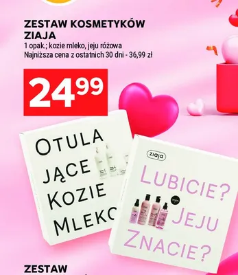 Cena produktu r贸偶ni si臋 w zale偶no艣ci od wybranego sklepu. Niestety nie posiadamy danych o aktualnych promocjach, jednak w艣r贸d archiwalnych ofert Zestaw w pude艂ku znacie jeju lubicie: p艂yn micelarny 390ml + tonik 200ml + pasta 75ml + mus do twarzy 50ml Ziaja zestaw kosztuje od 24,99 z艂.