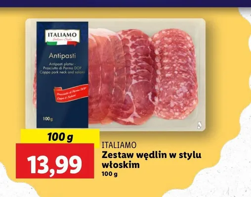 Cena produktu r贸偶ni si臋 w zale偶no艣ci od wybranego sklepu. Produkt Zestaw w臋dlin w艂oskich Italiamo mo偶esz kupi膰 w promocji ju偶 od 27,99 z艂. Najta艅sza oferta, jak膮 mamy w naszej bazie jest z sieci Biedronka. Zestaw w臋dlin w艂oskich Italiamo kosztuje aktualnie 27,99 z艂. Zobacz ofert臋