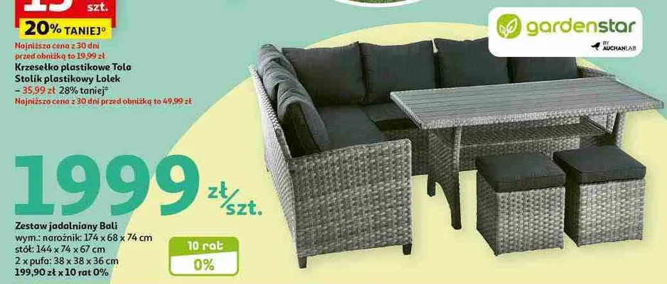 Nie wiesz gdzie kupi膰 produkt Zestaw wypoczynkowo bali pro Garden star w promocji? Aktualnie produkt Zestaw wypoczynkowo bali pro Garden star znajduje si臋 w atrakcyjnej cenie w sklepach Auchan. Opr贸cz tego produkt mo偶na kupi膰 w innych sklepach, jednak aktulanie nie posiadamy informacji o promocjach w nich.