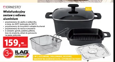 Ile kosztuje Zestaw z aluminium: garnek 4.5 l + patelnia grillowa + kosz do smażenia 1.9 l + wkład do gotowania na parze + pokrywka Ernesto?