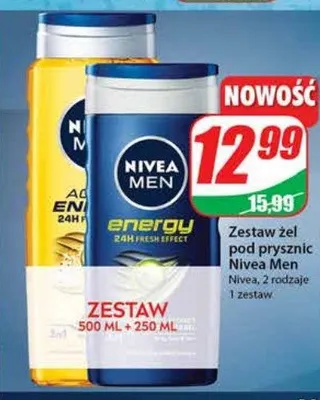 Ile kosztuje Zestaw 偶eli pod prysznic: active energy 500 ml + energy 250 ml Nivea men zestaw?