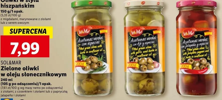 Ile kosztuje Zielone oliwki w oleju s艂onecznikowym z zio艂ami Sol&mar?