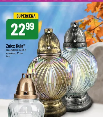 Cena produktu różni się w zależności od wybranego sklepu. Niestety nie posiadamy danych o aktualnych promocjach, jednak wśród archiwalnych ofert Znicz kula mrożona duża z-295 55h 33cm kosztuje od 22,99 zł.