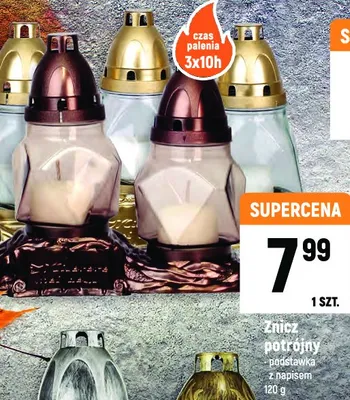 Przegl膮daj podobne oferty promocyjne do Znicz potr贸jny 120g z podstawk膮 i napisem!