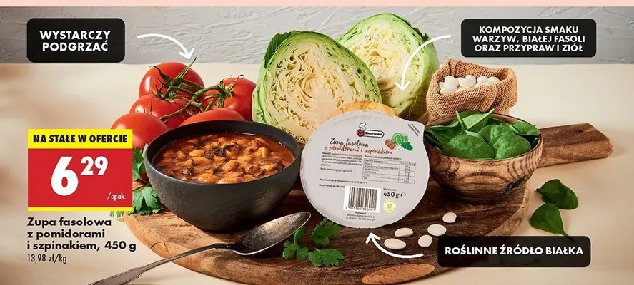 Ile kosztuje Zupa fasolowa z pomidorami i szpinakiem Biedronka?