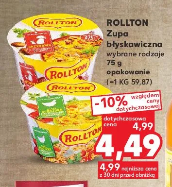 Zastanawiasz si臋, gdzie kupi膰 i ile kosztuje produkt Zupa grzybowa Rollton? Regularnie sprawdzamy, czy jest promocja na ten produkt w Biedronka, Lidl, Kaufland, Auchan, Netto, Makro i innych sklepach. Aktualnie posiadamy 2 oferty promocyjne na ten produkt. Ceny zaczynaj膮 si臋 od 6,99z艂!