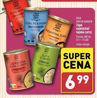 Cena produktu r贸偶ni si臋 w zale偶no艣ci od wybranego sklepu. Niestety nie posiadamy danych o aktualnych promocjach, jednak w艣r贸d archiwalnych ofert Zupa indonezyjska bihun z kurczakiem Asia green garden kosztuje od 3,49 z艂 do 6,99 z艂.