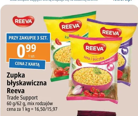 Cena produktu r贸偶ni si臋 w zale偶no艣ci od wybranego sklepu. Niestety nie posiadamy danych o aktualnych promocjach, jednak w艣r贸d archiwalnych ofert Zupa o smaku gulaszu Reeva kosztuje od 0,99 z艂 do 1,29 z艂.