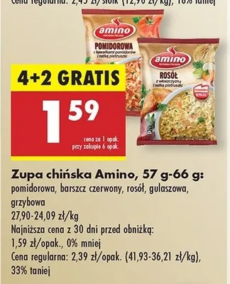 Zastanawiasz si臋, gdzie kupi膰 i ile kosztuje produkt Zupa pomidorowa Amino? Regularnie sprawdzamy, czy jest promocja na ten produkt w Biedronka, Lidl, Kaufland, Auchan, Netto, Makro i innych sklepach. Aktualnie posiadamy 2 oferty promocyjne na ten produkt. Ceny zaczynaj膮 si臋 od 1,73z艂!