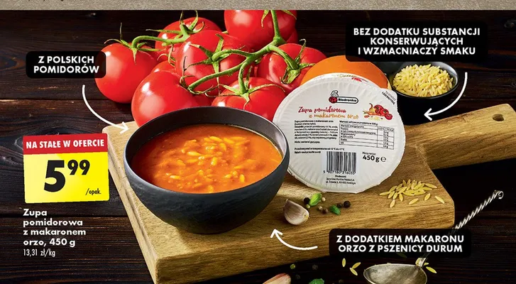 Nie wiesz gdzie kupi膰 produkt Zupa pomidorowa z makaronem orzo Zupy z naszej kuchni w promocji? Aktualnie produkt Zupa pomidorowa z makaronem orzo Zupy z naszej kuchni znajduje si臋 w atrakcyjnej cenie w sklepach Biedronka. Opr贸cz tego produkt mo偶na kupi膰 w innych sklepach, jednak aktulanie nie posiadamy informacji o promocjach w nich.