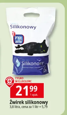 Cena produktu różni się w zależności od wybranego sklepu. Produkt Żwirek dla kota silikonowy Wiodąca marka p'tit ami możesz kupić w promocji już od 7,49 zł do 14,95 zł. Najtańsza oferta, jaką mamy w naszej bazie jest z sieci Aldi. Żwirek dla kota silikonowy Wiodąca marka p'tit ami kosztuje aktualnie 7,49 zł. Zobacz ofertę