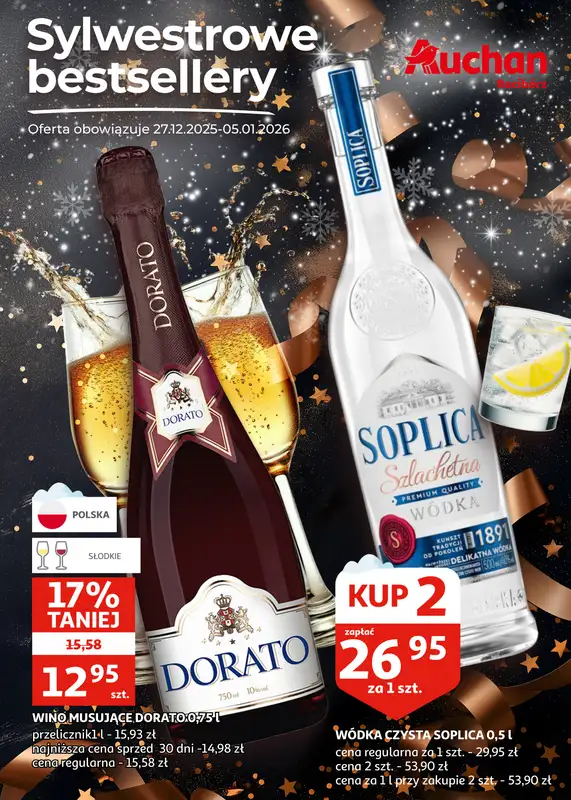 Obejrzyj najnowszą gazetkę sieci Auchan, Gazetka Racibórz I Sylwestrowe Bestsellery, obowiązującą od 27 grudnia do 5 stycznia. Ta aktualna gazetka Auchan zawiera wiele wspaniałych promocji na różnego rodzaju produkty.