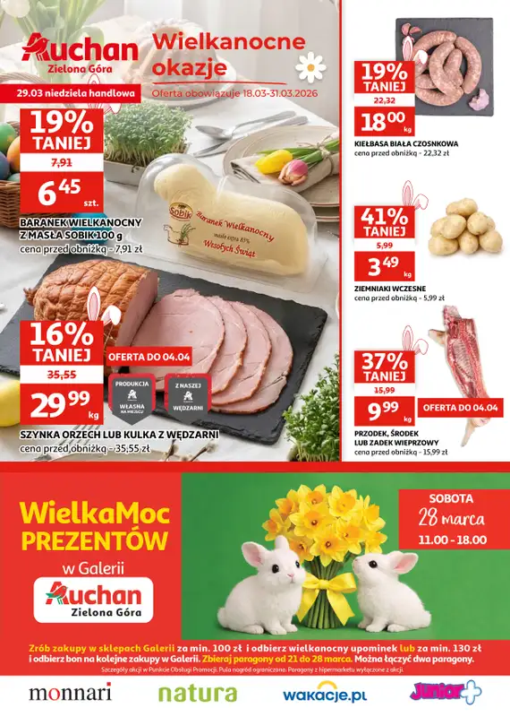 Obejrzyj najnowszą gazetkę sieci Auchan, Gazetka Zielona Góra I Wielkanocne okazje, obowiązującą od 18 marca do 31 marca. Ta aktualna gazetka Auchan zawiera wiele wspaniałych promocji na różnego rodzaju produkty.