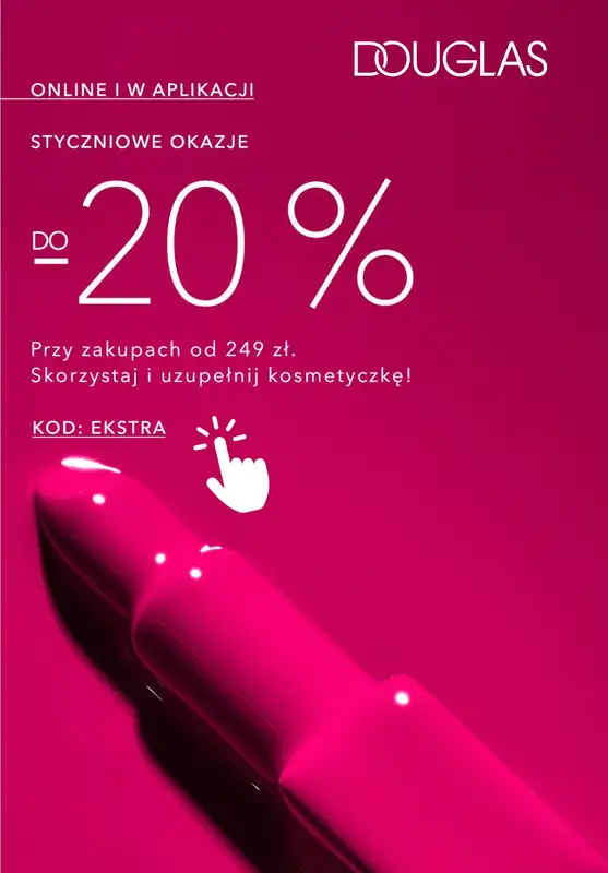 Obejrzyj najnowszą gazetkę sieci BEST SALE, Douglas | Do -20% styczniowe okazje, obowiązującą od 8 stycznia do 12 stycznia. Ta aktualna gazetka BEST SALE zawiera wiele wspaniałych promocji na różnego rodzaju produkty.