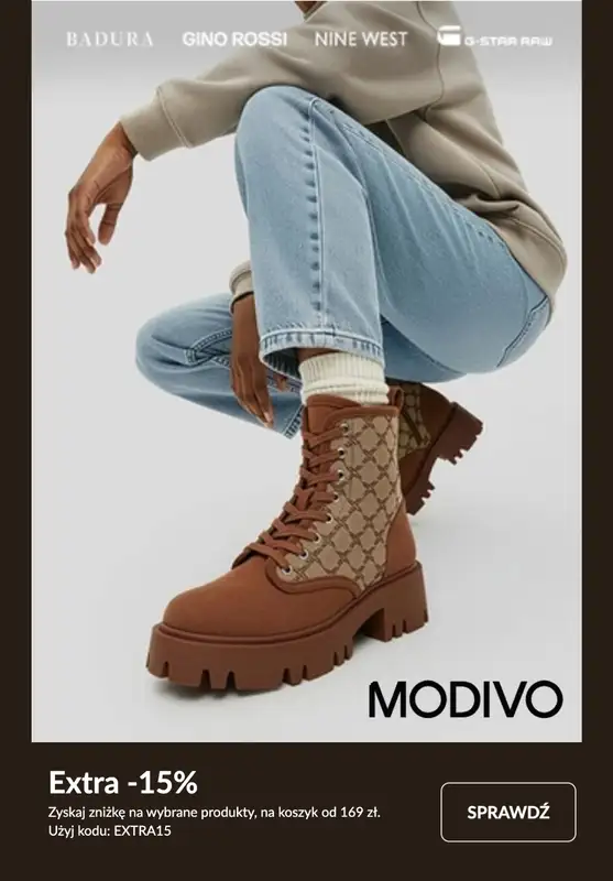 Obejrzyj najnowszą gazetkę sieci BEST SALE, Modivo | Extra -15% zniżki na wybrane produkty, na koszyk od 169 zł, obowiązującą od 14 stycznia do 18 stycznia. Ta aktualna gazetka BEST SALE zawiera wiele wspaniałych promocji na różnego rodzaju produkty.