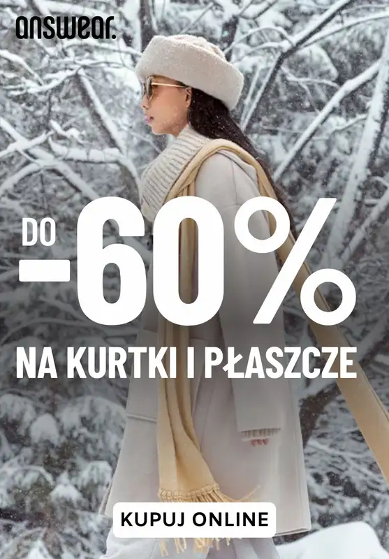 Obejrzyj najnowszą gazetkę sieci BEST SALE, Answear | Do -60% na kurtki i płaszcze, obowiązującą od 20 stycznia do 29 stycznia. Ta aktualna gazetka BEST SALE zawiera wiele wspaniałych promocji na różnego rodzaju produkty.