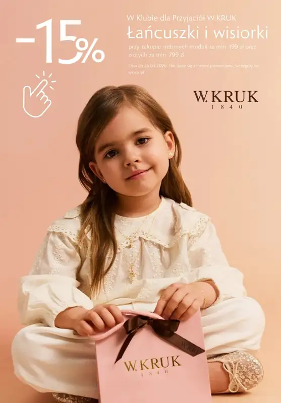 Obejrzyj najnowszą gazetkę sieci BEST SALE, W.Kruk | -15% na łańcuszki i wisiorki idealne na Komunię Świętą, obowiązującą od 23 kwietnia do 26 kwietnia. Ta aktualna gazetka BEST SALE zawiera wiele wspaniałych promocji na różnego rodzaju produkty.