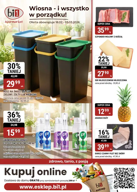 Obejrzyj najnowszą gazetkę sieci bi1, Gazetka Bielsko-Biała I Wiosna - i wszystko w porządku!, obowiązującą od 18 lutego do 3 marca. Ta aktualna gazetka bi1 zawiera wiele wspaniałych promocji na różnego rodzaju produkty.