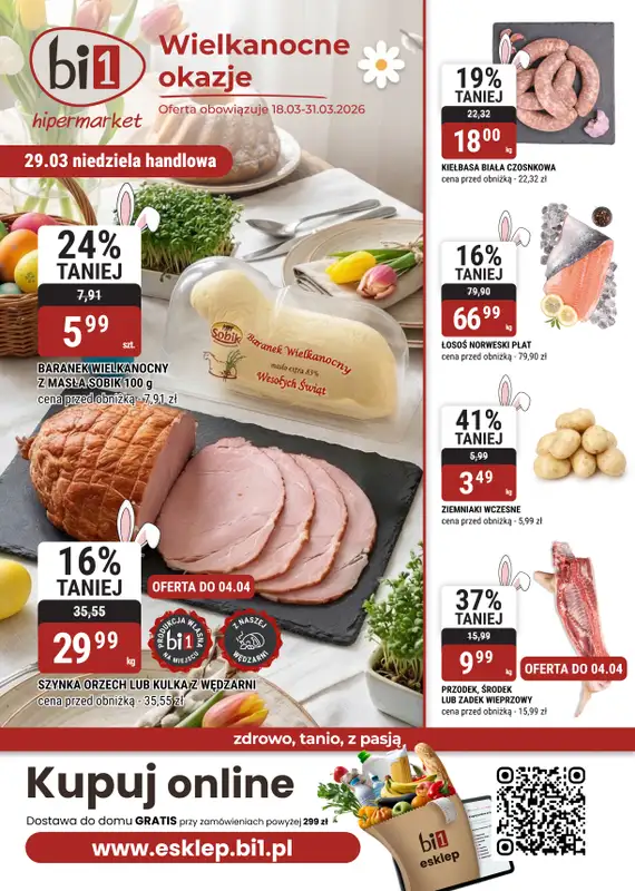 Obejrzyj najnowszą gazetkę sieci bi1, Gazetka Rzeszów I Wielkanocne okazje, obowiązującą od 18 marca do 31 marca. Ta aktualna gazetka bi1 zawiera wiele wspaniałych promocji na różnego rodzaju produkty.