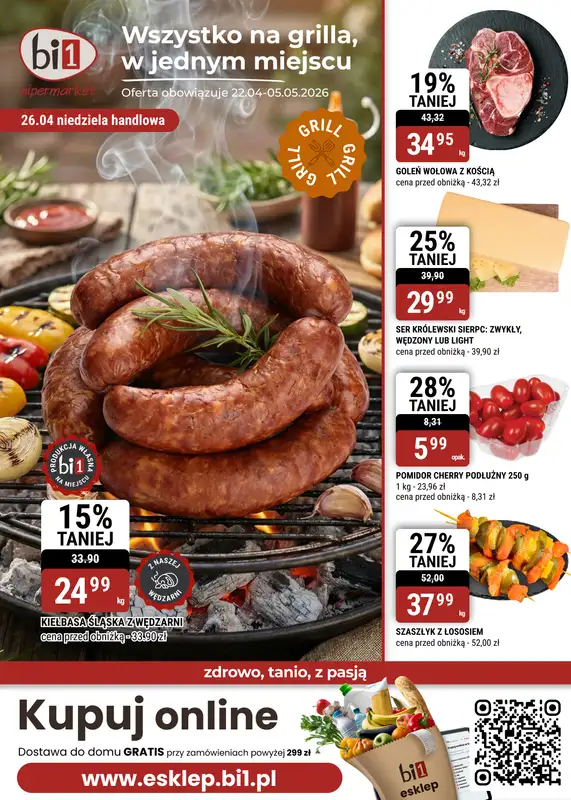 Obejrzyj najnowszą gazetkę sieci bi1, Gazetka Białystok I Wszystko na grilla, w jednym miejscu, obowiązującą od 22 kwietnia do 5 maja. Ta aktualna gazetka bi1 zawiera wiele wspaniałych promocji na różnego rodzaju produkty.
